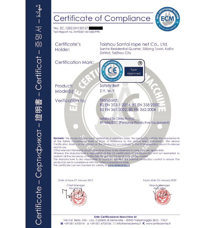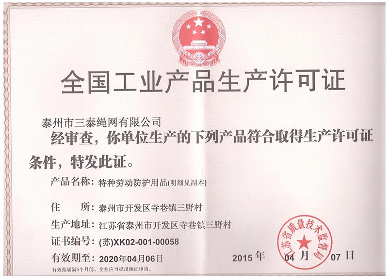 泰州市三泰健康科技有限公司(原 泰州市三泰繩網(wǎng)有限公司),本公司成立于1988年12月22日,至今近30年的生產(chǎn)歷程。多年來的生產(chǎn)經(jīng)驗,加之我們不斷的創(chuàng)新,已經(jīng)建設成為集研制、開發(fā)、生產(chǎn)、銷售為一體的龍頭企業(yè)。公司生產(chǎn)線由捻線車間、制繩車間、織網(wǎng)車間、織帶車間、織(絞)繩車間、安全網(wǎng)組裝車間、安全帶組裝車間、檢驗室等組成。企業(yè)現(xiàn)有職工155人,企業(yè)管理人員6名,市場研發(fā)人員8名,專業(yè)質檢人員2名,......